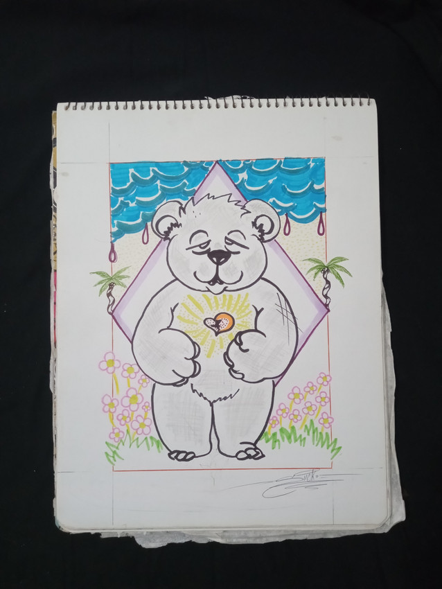 Dibujo con técnica mixta, plumón ,colores, plumas