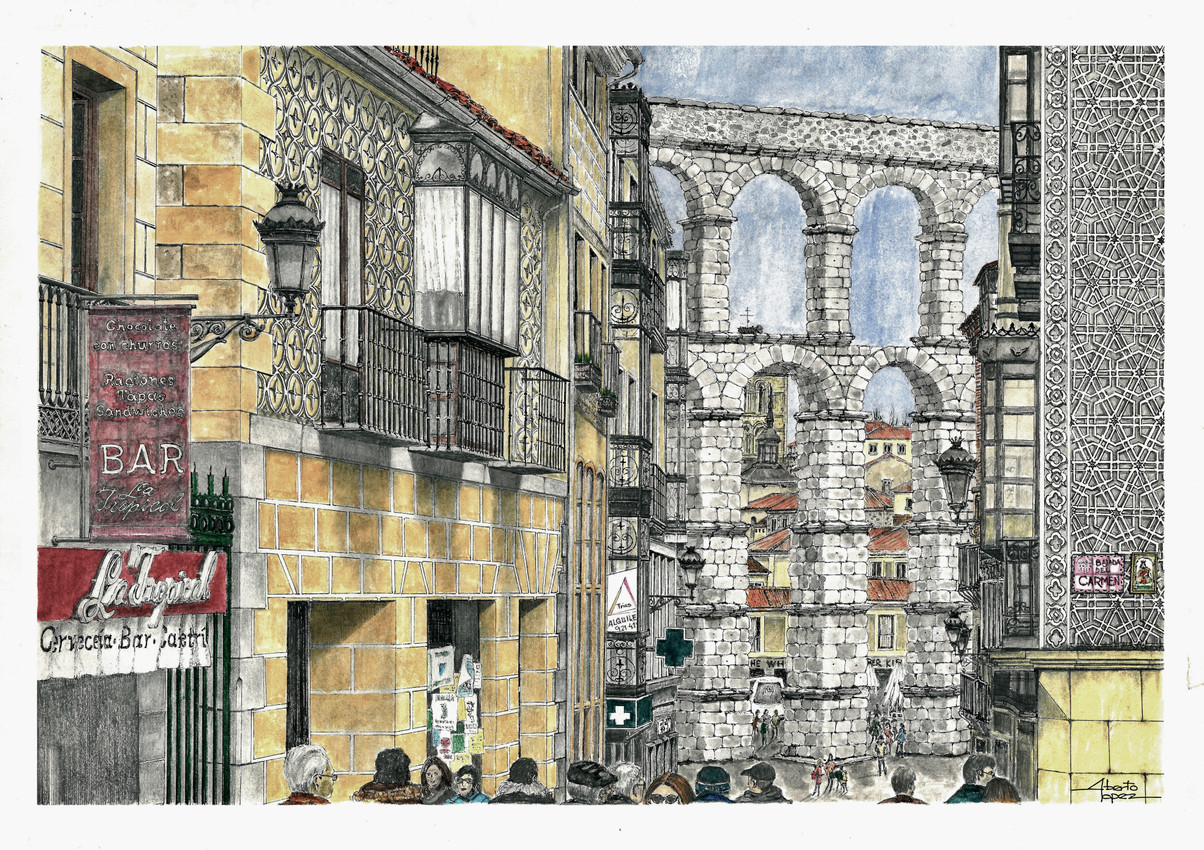 Vista parcial del acueducto desde la calle Real de Segovia.