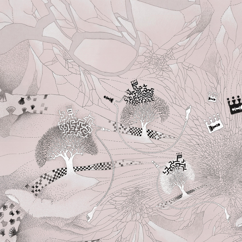 PP: Correcto, por ello se inicia un exilio. Un exilio voluntario. Si un exilio es visto como una deserción o una renuncia, es por que hay un desplazamiento en un tablero de ajedrez, Una pieza que se fuga y que inicia la huida. A poblar nuevas tierras. A conquistar nueva tierra, a ser reyes de estos territorios. En esta huida nuestro movimiento va a dejar huellas de nuestros pasos peatonales (peón). En el momento de concluir este recorrido, podemos coronar, ya somos el rey. Alrededor de nuestros arboles laberínticos del exilio, algunos valientes podrán lucir la corona de huellas.