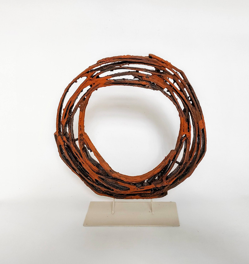 La pátina de óxido y los tonos tierra refuerzan la sensación de la huella del tiempo. La escultura parece un artefacto que ha resistido innumerables brisas y tormentas, absorbiendo los secretos del mundo.