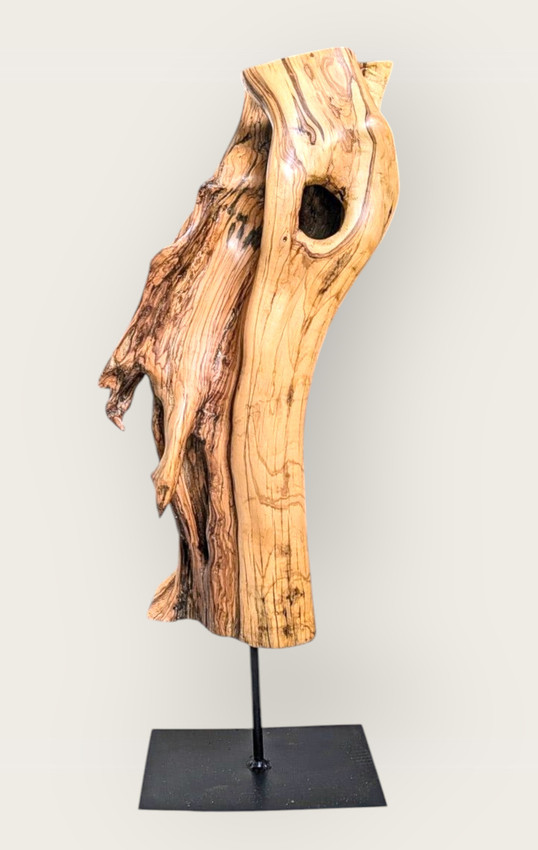 Realizada en madera de olivo, busca adentrarse en su interior con la intención de ahondar en su historia, en su tiempo milenario.