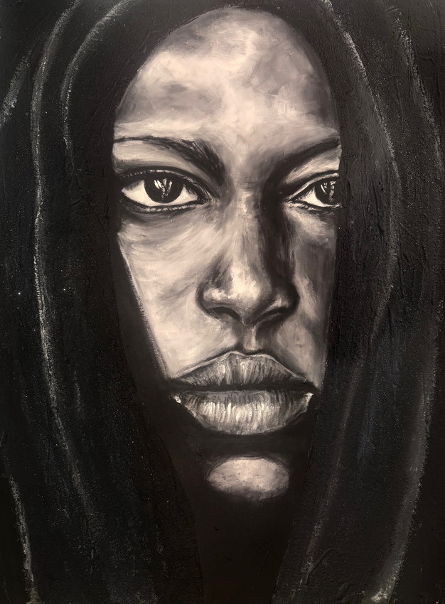 “Mundo que no Existe II” es una exploración en técnica mixta donde un fondo abstracto, creado con materiales orgánicos, da vida a un rostro oculto bajo un velo oscuro. Busqué transmitir una sensación de misterio, de un mundo interior inaccesible, jugando con la luz y la sombra para sugerir más que revelar. La textura orgánica del fondo contrasta con la suavidad del rostro, creando una tensión visual que refleja la dualidad interna del sujeto.