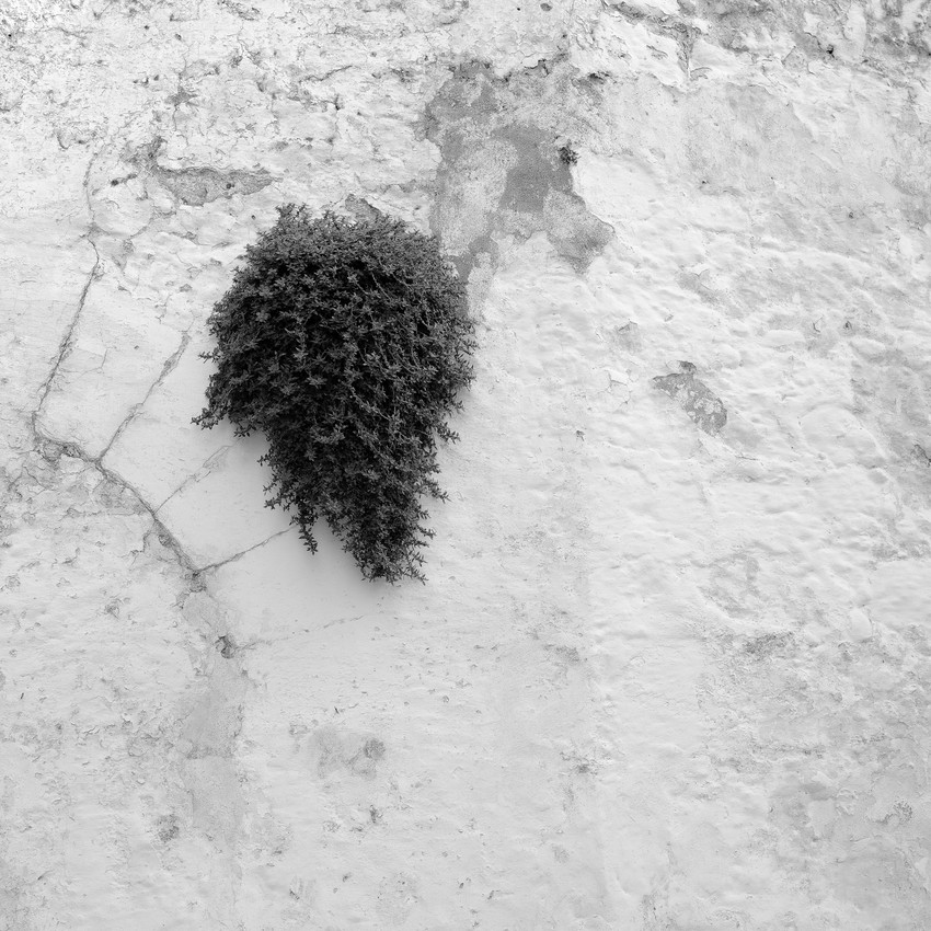 Fotografía digital que se encuadra dentro de la colección "Contra el muro", en la que se hace una crítica a la desnaturalización que se hace de la vegetación al hacerla crecer junto a estructuras artificiales tales como muros, impidiendo su total desarrollo y esplendor.