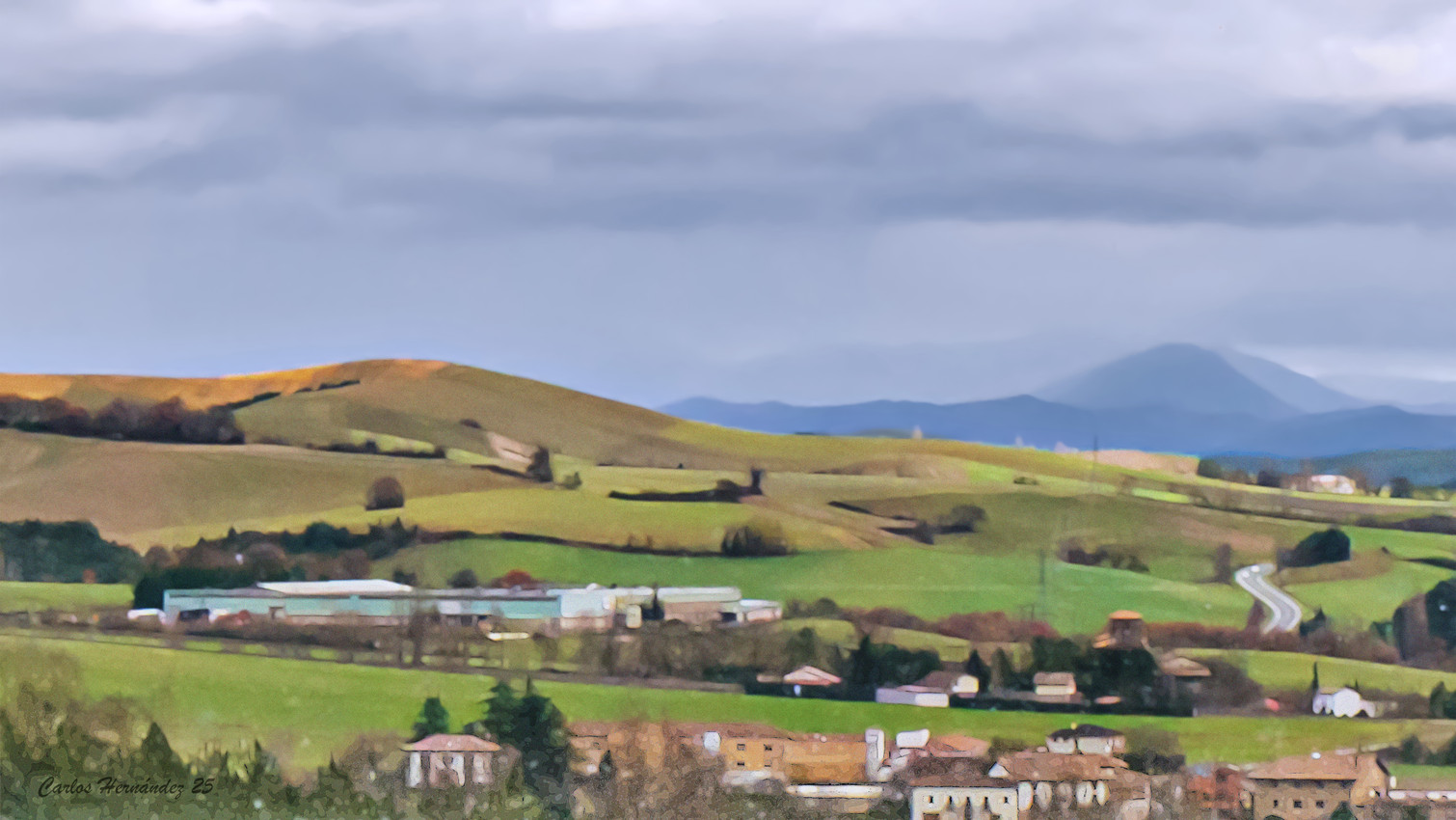 Foto editada para lograr un efecto acuarela. Tomada desde el museo de Oteiza en Alzuza (valle de Egües, Navarra), en otoño del 2024.