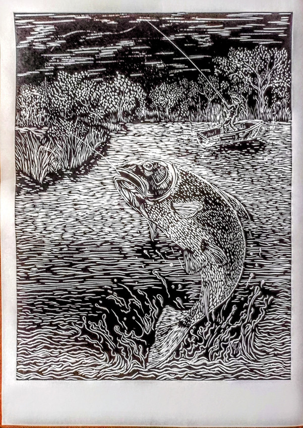 Grabado en relieve sobre vinilo , tamaño 50 x 70 hoja de acuarela de 250 gramos