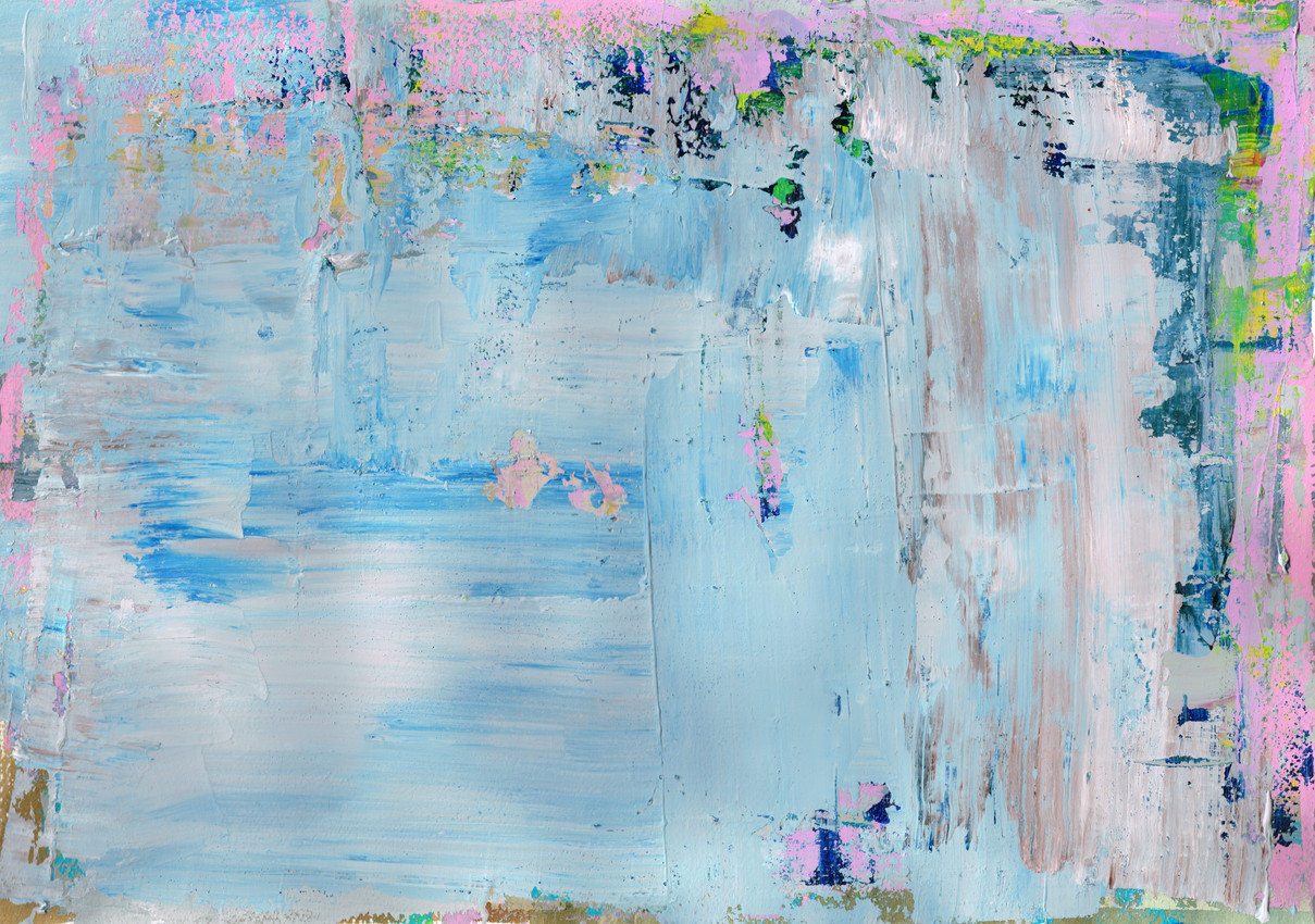 Acrílico sobre papel de 42x29 centímetros. Un mundo de texturas y azules que sumerge en la profundidad del color. Trazos gruesos y expresivos crean un relieve que invita a tocar, a sentir la rugosidad de la superficie.