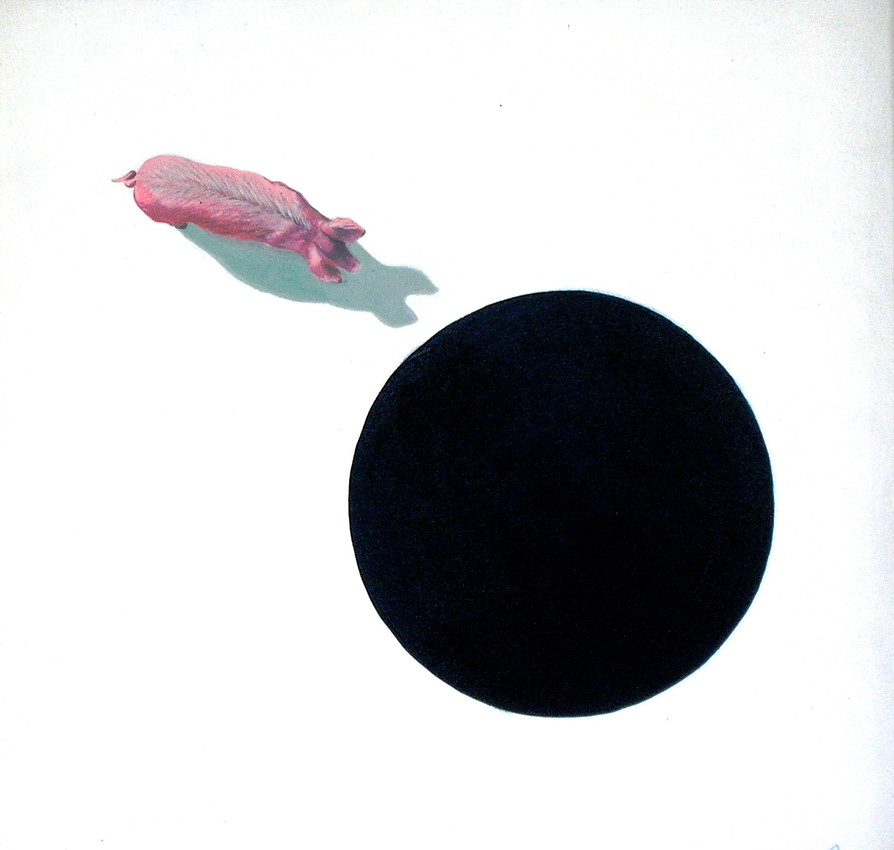 extraño momento de este cerdo asomándose a ese agujero,a su destino? a su esperanza?