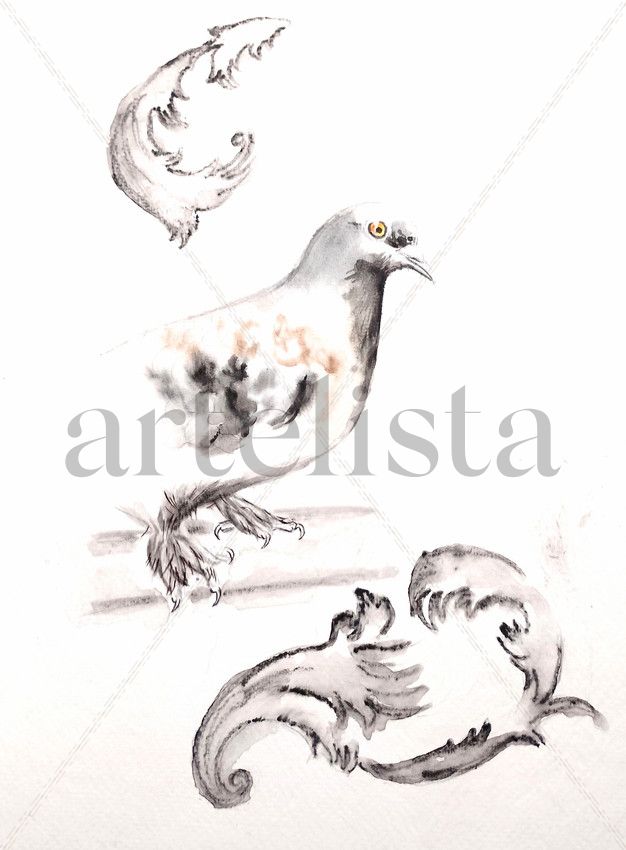 Retrato de ave figurativo libre con reminiscencias clásicas de estilo francés