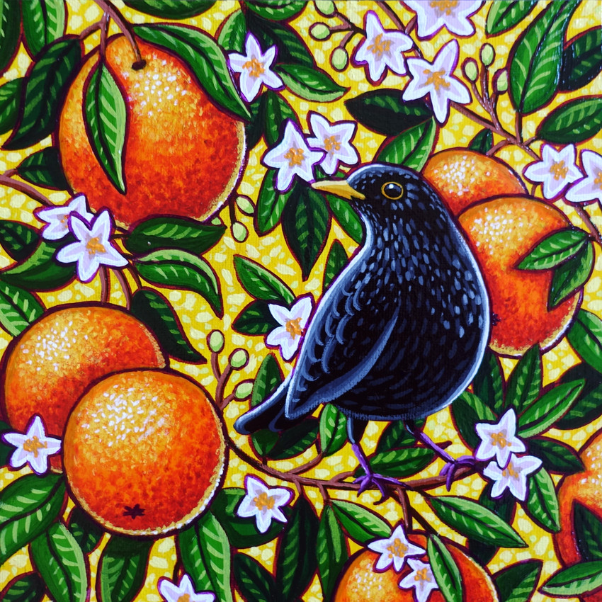 Finalizada con barniz brillante para proteger la pieza y mantener los colores vibrantes. Firmada en la parte de atrás. No incluye marco.