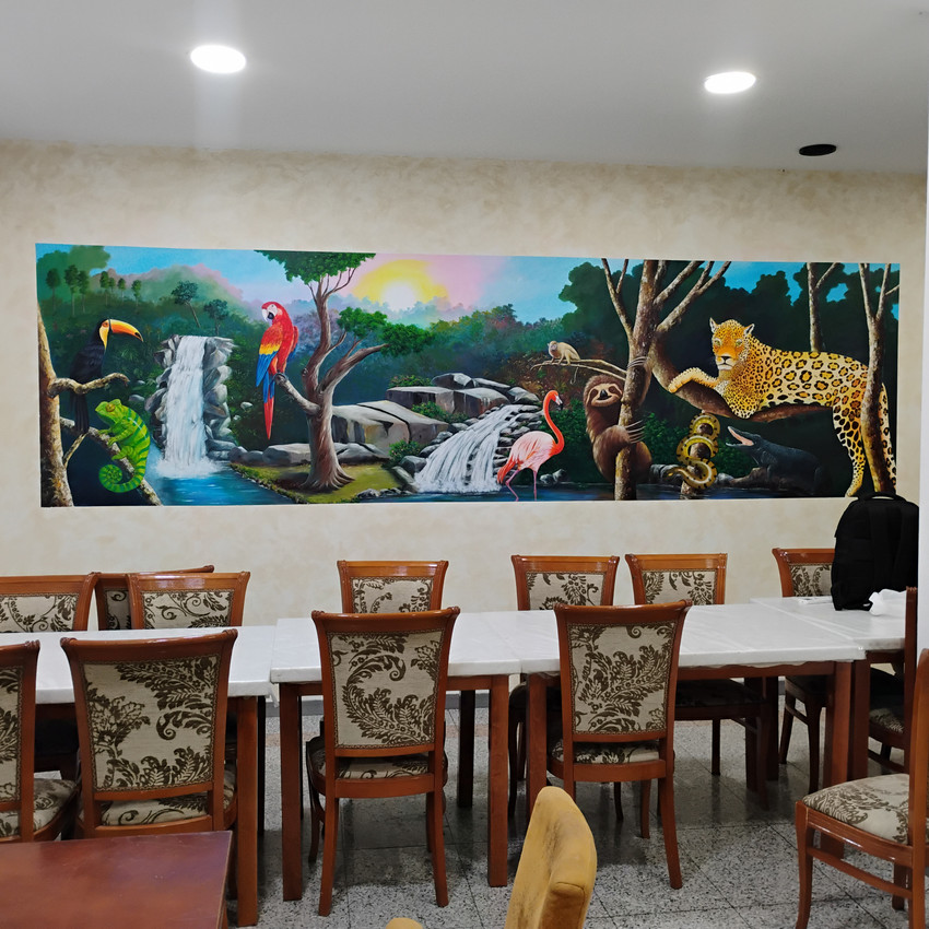Mural sobre pared de Pladur , pintado con acrílicos a mano alzada , la dimensión es de 4 m. X 1.30 m.
