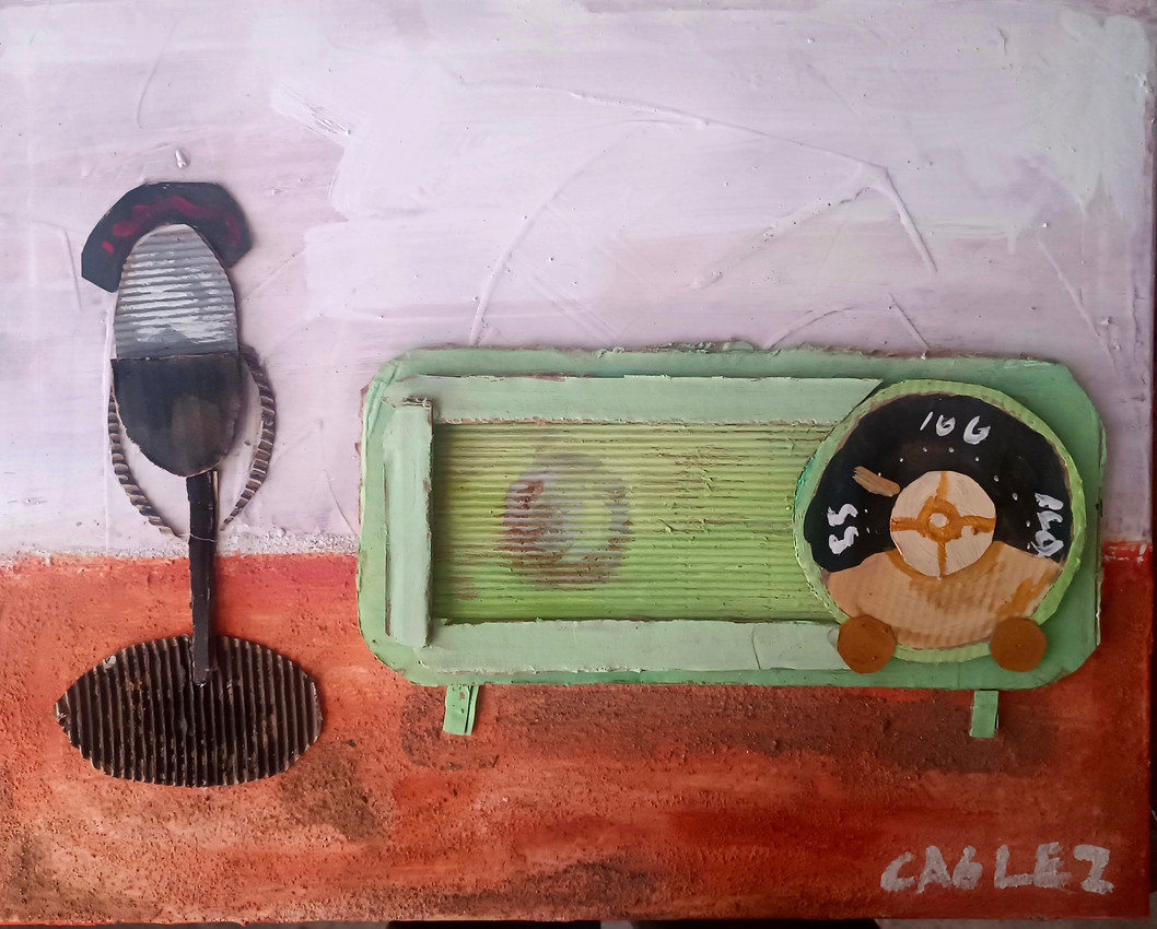 Radio Antiguo en técnica mixta sobre tela, cartón reciclado.