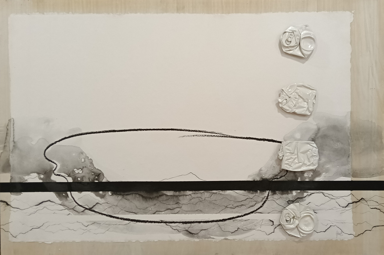 Obra realizada sobre madera con técnica mixta a base de resinas, papel, latas de hojalata y pigmento.