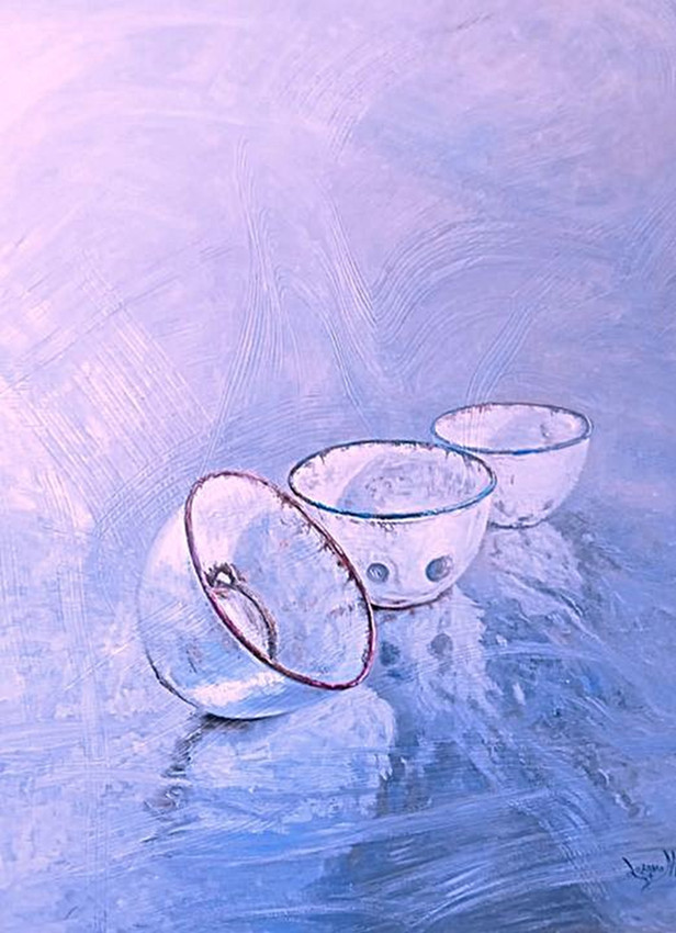 Presente, pasado y futuro, expresado con tres tazones con atsmofera e tonos azules