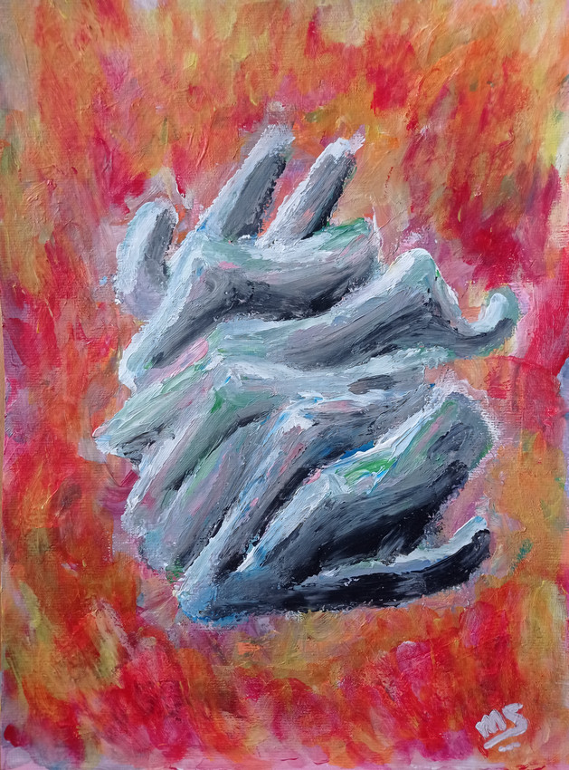 Esta obra es una exploración cruda y directa de las emociones primarias a través de la abstracción gestual. En 'Catarsis', el color se convierte en el vehículo de un sentimiento incontenible: el fondo, dominado por rojos ardientes, naranjas y amarillos, evoca una atmósfera de ebullición y fuego.