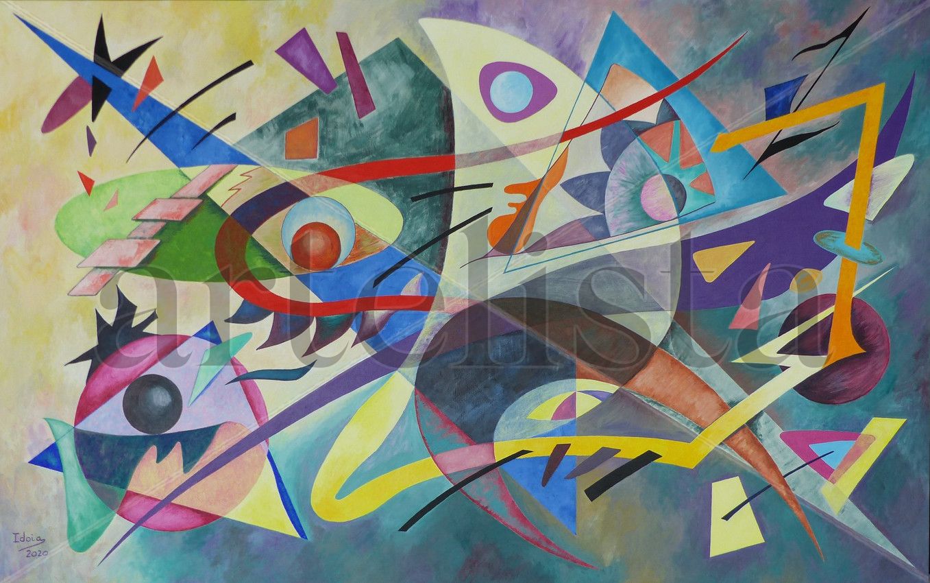 Abstracción de composición libre, con formas y geometrías de gran variedad cromática.