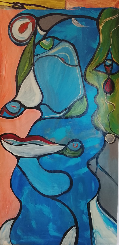 Es un cuerpo dando a en tender lo moderno con lo figurativo de dos cuerpos uno artistico y el otro sintiendo catarsis de dolor y sufrimiento