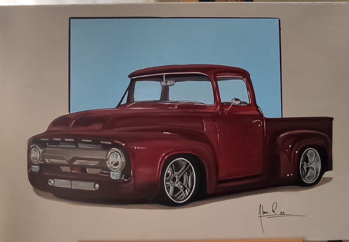 Ford F 100 vintage, el cuadro original está elaborado al óleo sobre lienzo de 24 x 36 pulgadas
