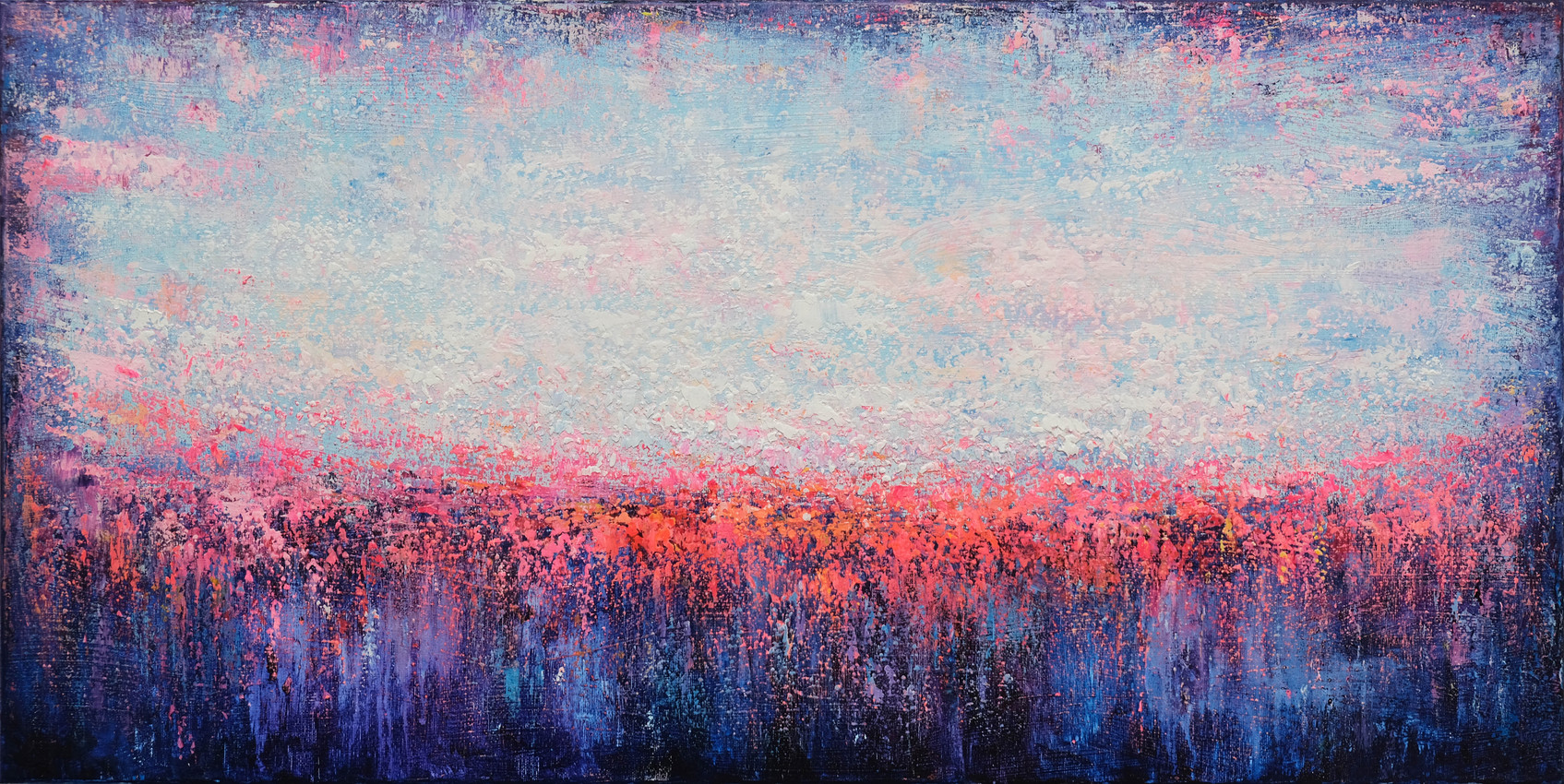 Pintura abstracta original con texturas. Esta pintura captura la belleza efímera de un atardecer, inspirada en el impresionismo y el expresionismo, para ofrecer una visión casi abstracta de la naturaleza.
