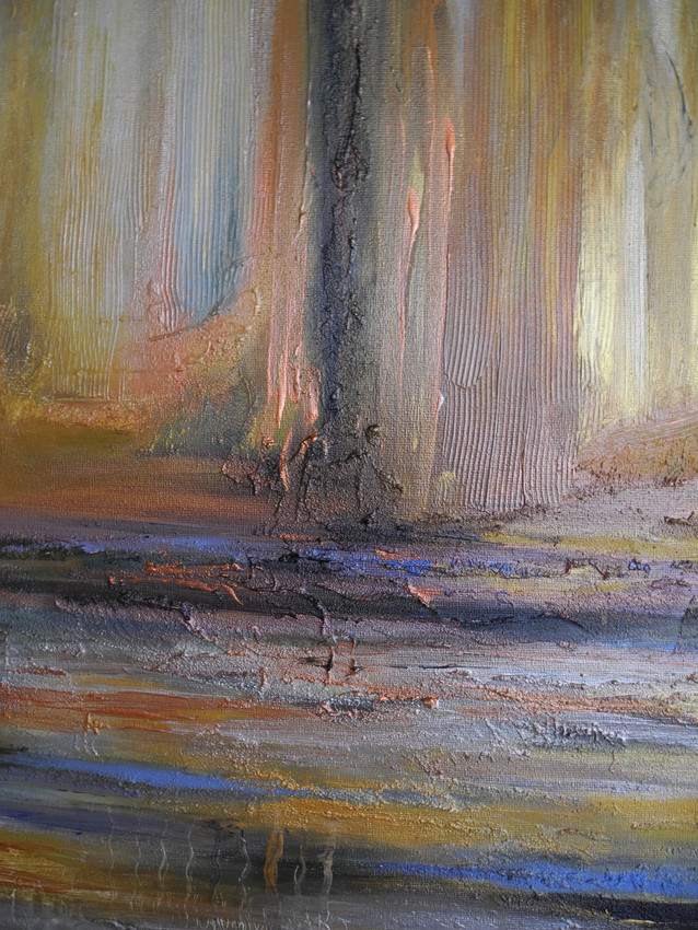 La creación de mis obras me permiten transmitir un mundo de sensaciones que plasmo en los lienzos ,elaborando craquelados, realizando impastos y extender la pintura.