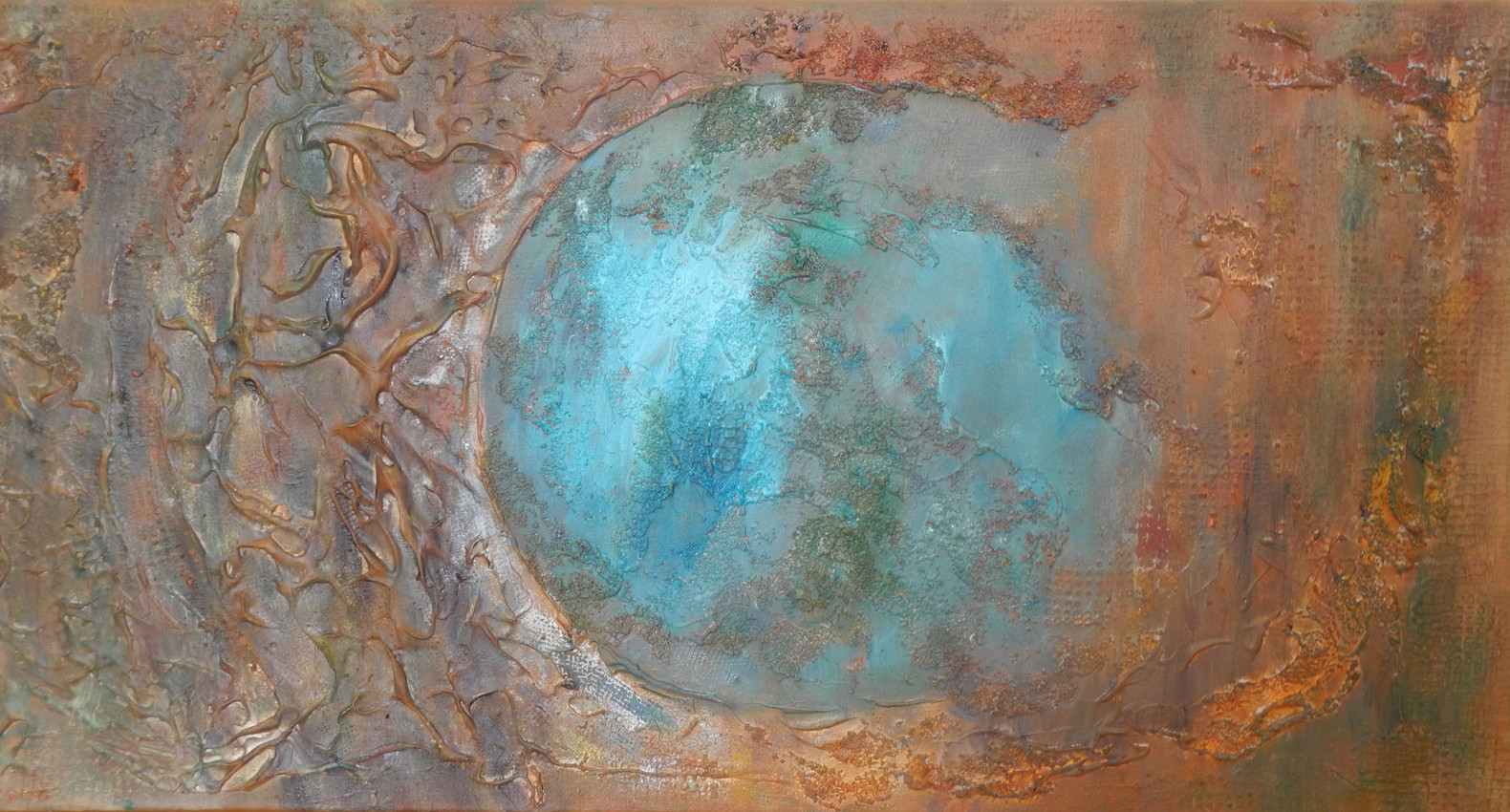 La creación de mis obras me permiten transmitir un mundo de sensaciones que plasmo en los lienzos ,elaborando craquelados, realizando impastos y extender la pintura.