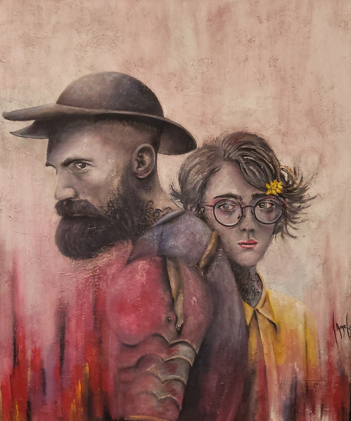 oleo sobre lienzo medida 116x100cm kijote y dulcinea en una version contemporanea y muy actual