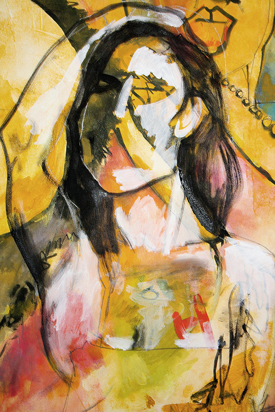 Figura y sombra se entrelazan en un destello dorado, como si la memoria se deshiciera en pinceladas. El rostro, apenas sugerido, emerge entre silencios rotos y trazos que vibran. La obra respira una identidad en metamorfosis, capturando el instante en que la luz intenta recomponer lo que el tiempo dispersó.