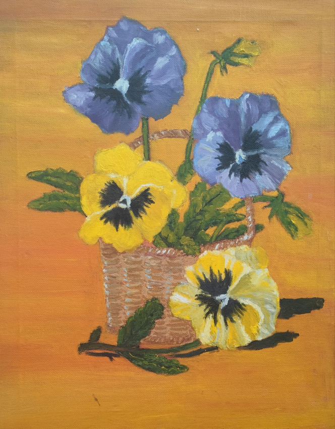 Obra original que captura la delicadeza de los pensamientos en un bodegón vibrante. Destaca por un uso audaz del color, donde el fondo cálido resalta los tonos fríos y naturales de las flores. Una pieza expresiva que aporta vitalidad y una pincelada fresca a cualquier estancia.