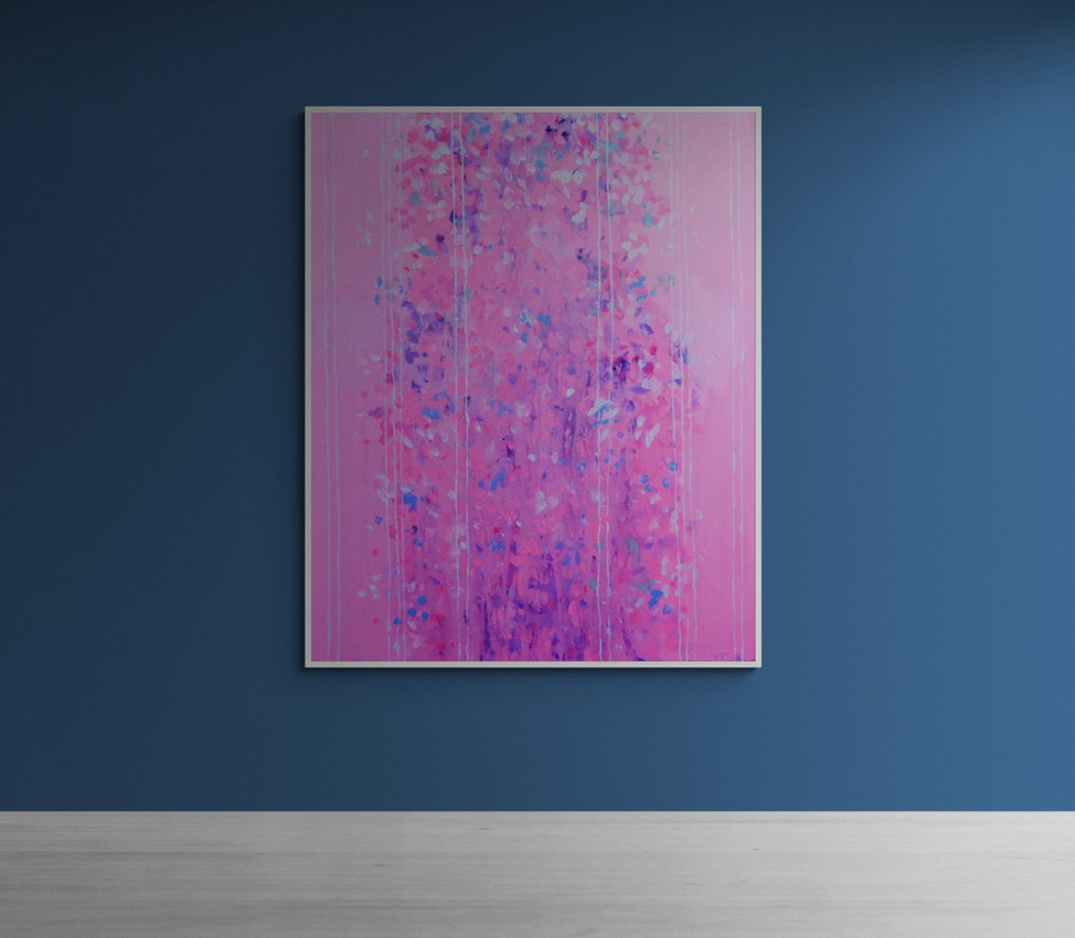 Experience the allure of "Pink Abstract Flowers," an original painting where vibrant energy meets contemporary expression. This large piece captures the essence of abstract beauty with a dance of pink hues.