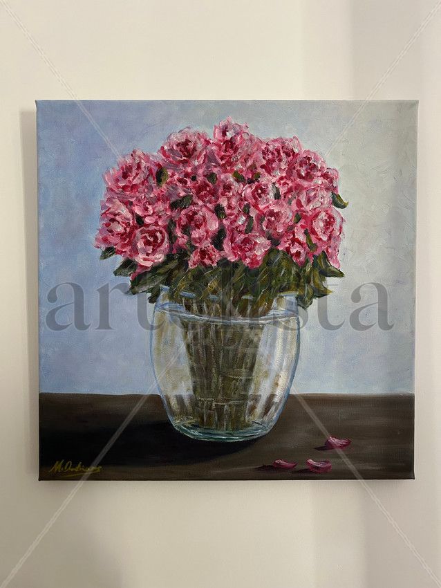 Óleo sobre lienzo con motivos florales. Medidas 40 x 40 cm.