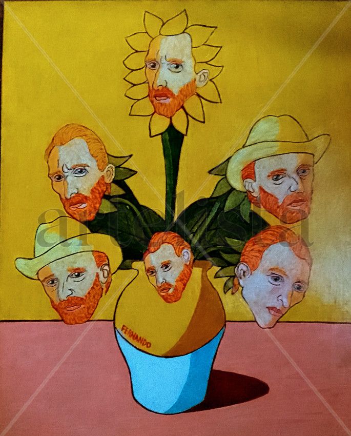 INSPIRED IN THE SUNFLOWERS OF VINCENT VAN GOGH. OILS ON HARDBOARD, 5 MM THICK.,NO FRAMES (FRAIMING IS ACCORDING TO THE BUYER)