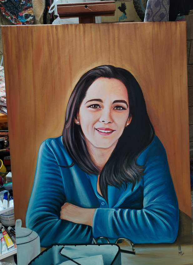 RETRATO FEMENINO AL ÓLEO,SOBRE LONA 50 X 70 CM.