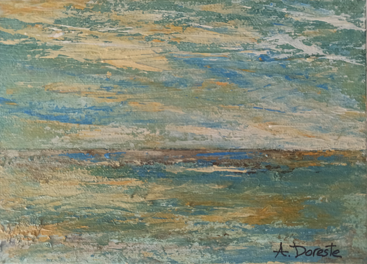 Inicié esta andadura con el pastel, donde plasmé principalmente marinas de mi playa natal: la playa de Las Canteras, en Las Palmas de Gran Canaria. Más adelante realicé una leve incursión en la acuarela y posteriormente dediqué unos años a la pintura al óleo. En la actualidad trabajo con técnicas mixtas pinturas acrílicas que fusiono con diferentes materiales.