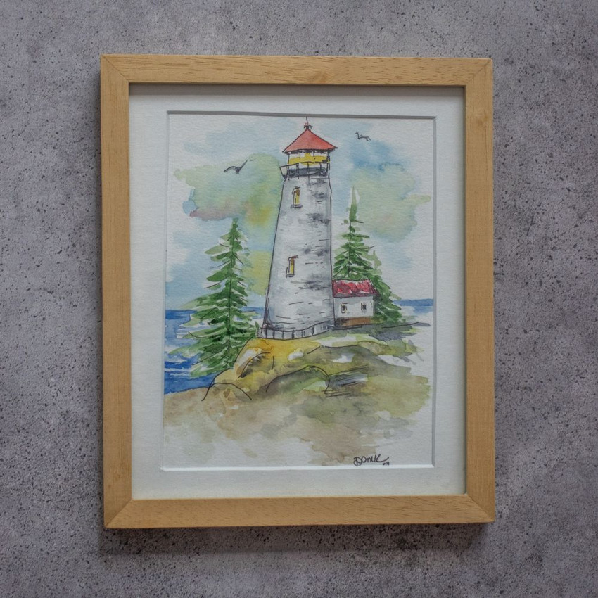 Cuadro Original "Mi Faro" en Acuarela, una pintura original y única. Obra de arte es creada y enmarcada íntegramente a mano por mí, artista argentina. Realizada con acuarelas profesionales de la más alta calidad sobre papel especial para acuarela de 300 gr, asegurando colores luminosos y una excelente conservación a lo largo del tiempo. Enmarcadas artesanalmente con marco de madera de Marupá natural, vidrio 3mm float y ventana paspartú libre de ácidos, estas obras cuentan con materiales de primera calidad que garantizan su protección y durabilidad.