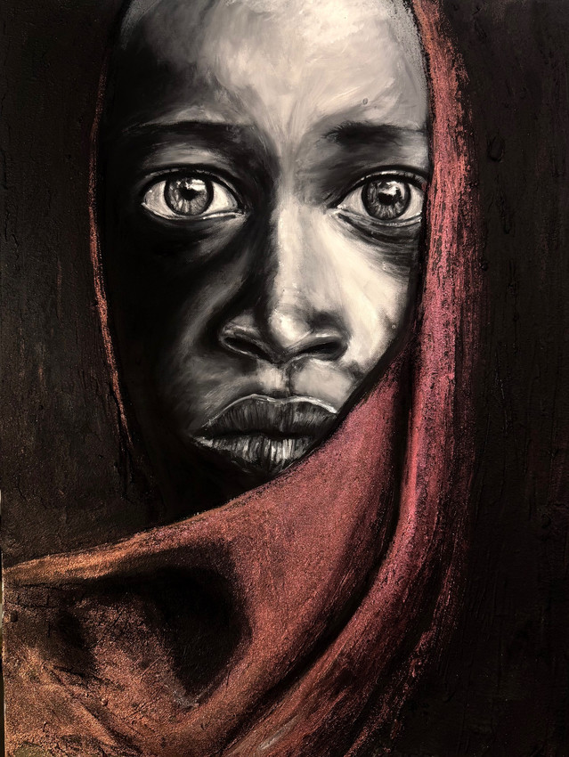 “Mundo que no Existe III” es una pieza en técnica mixta donde busco representar una emoción, un estado interior más que una realidad objetiva. El fondo abstracto, con sus materiales orgánicos, simboliza la complejidad y la fragilidad del alma, un terreno inestable y misterioso. El rostro, en blanco y negro, emerge de este caos, reflejando una tristeza profunda, una soledad que se palpa. Es un mundo interior, un espacio emocional que solo existe en la mente, el manto realizado con una tecnica que permite ver lo en diferentes colores segun la luz y el angulo que lo visiones.