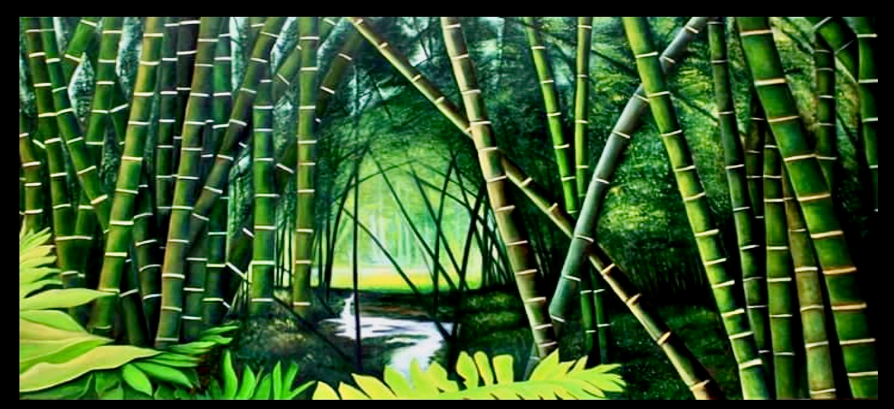 En esta escena, el color verde domina como símbolo de vida, serenidad y esperanza, mientras las variaciones de luz y sombra evocan el ritmo silencioso del bosque. El espectador se siente envuelto por la frescura del ambiente, como si el bambú murmurara historias antiguas al compás del viento. La obra transmite la idea de un encuentro íntimo con la naturaleza, donde el paisaje deja de ser solo un lugar físico para convertirse en un espacio de contemplación y armonía interior.