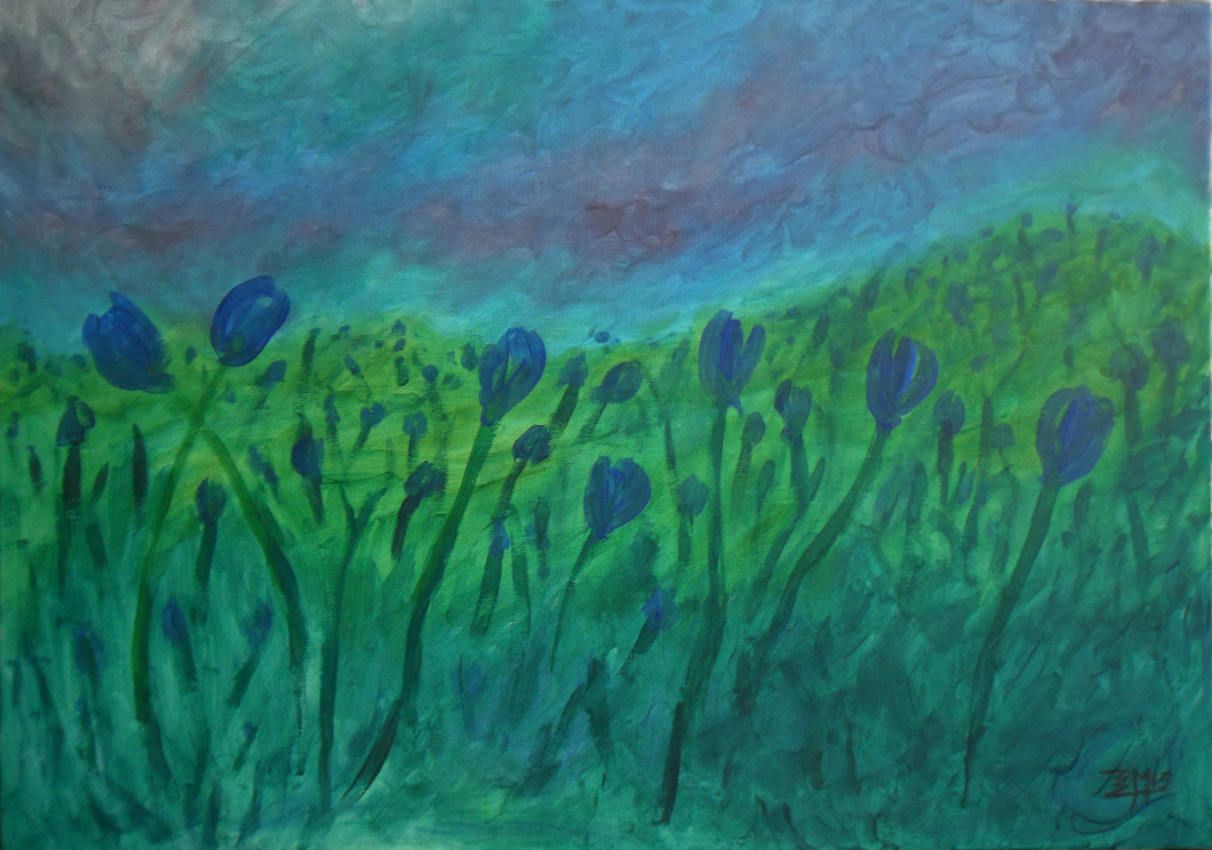 Danza de Tulipanes Azules (2013), óleo sobre lienzo, 50x70.