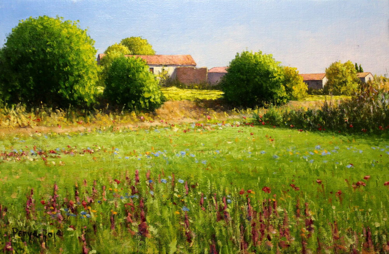 En esta pintura, el artista captura la serenidad y esencia del campo aragonés con un detallado realismo. Los verdes vibrantes de la hierba y la presencia de estructuras rurales transmiten la vida tranquila y arraigada en la agricultura. El cielo claro se extiende, aportando calma y una sensación de espacio abierto. A través de su delicada pincelada y composición cuidadosamente equilibrada, la obra invita a contemplar la belleza natural y nostálgica de los paisajes rurales.