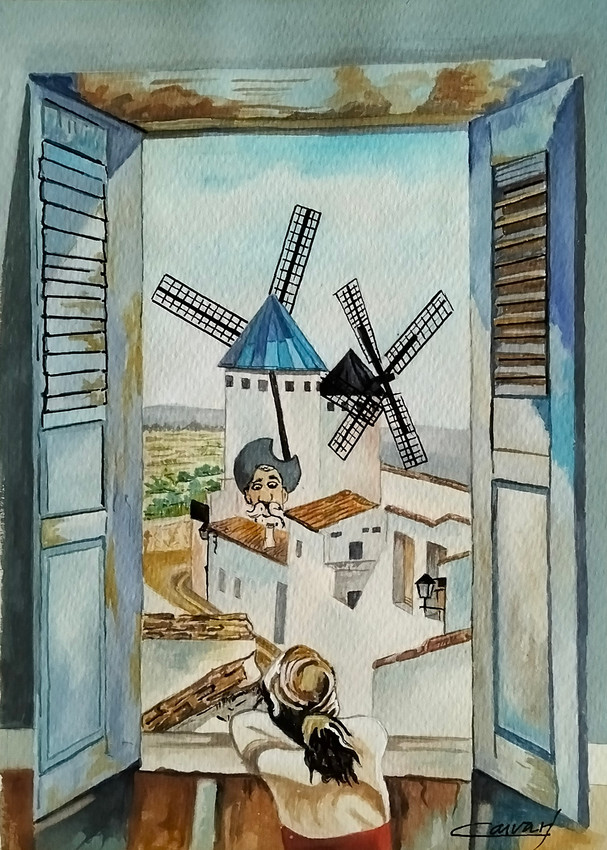 ¿Qué pasará por la cabeza de Dulcinea cuando contempla los molinos de viento de Consuegra, verdaderos protagonistas de la lucha de su amado contra la realidad y la fantasía?