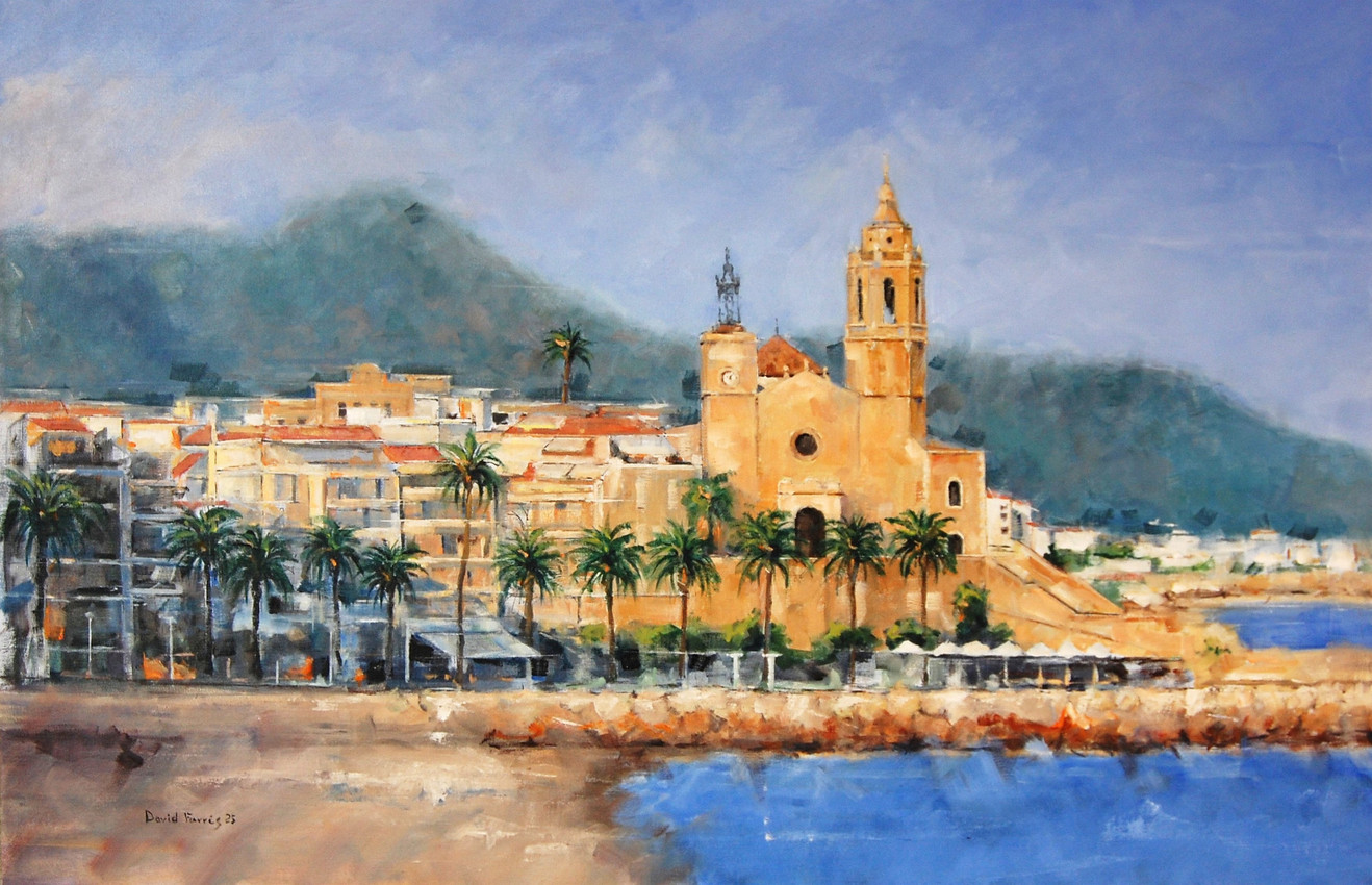 Captura l'essència del Mediterrani amb Sitges 2025, una pintura a l'oli original sobre llenç. Aquesta obra figurativa representa l´encantadora arquitectura d´un poble enclavat al costat del mar. L'artista se centra en la llum radiant que banya l'església, convertint-la en el veritable punt focal de l'obra.