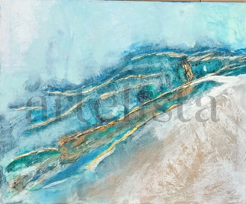 "Sueño" es una inmersión en el subconsciente, una exploración de la mente a través de la paleta fría y etérea del azul, gris y turquesa. La pintura acrílica se despliega en el lienzo con una fluidez que evoca la naturaleza líquida de los sueños, donde las formas se funden y se transforman sin cesar.