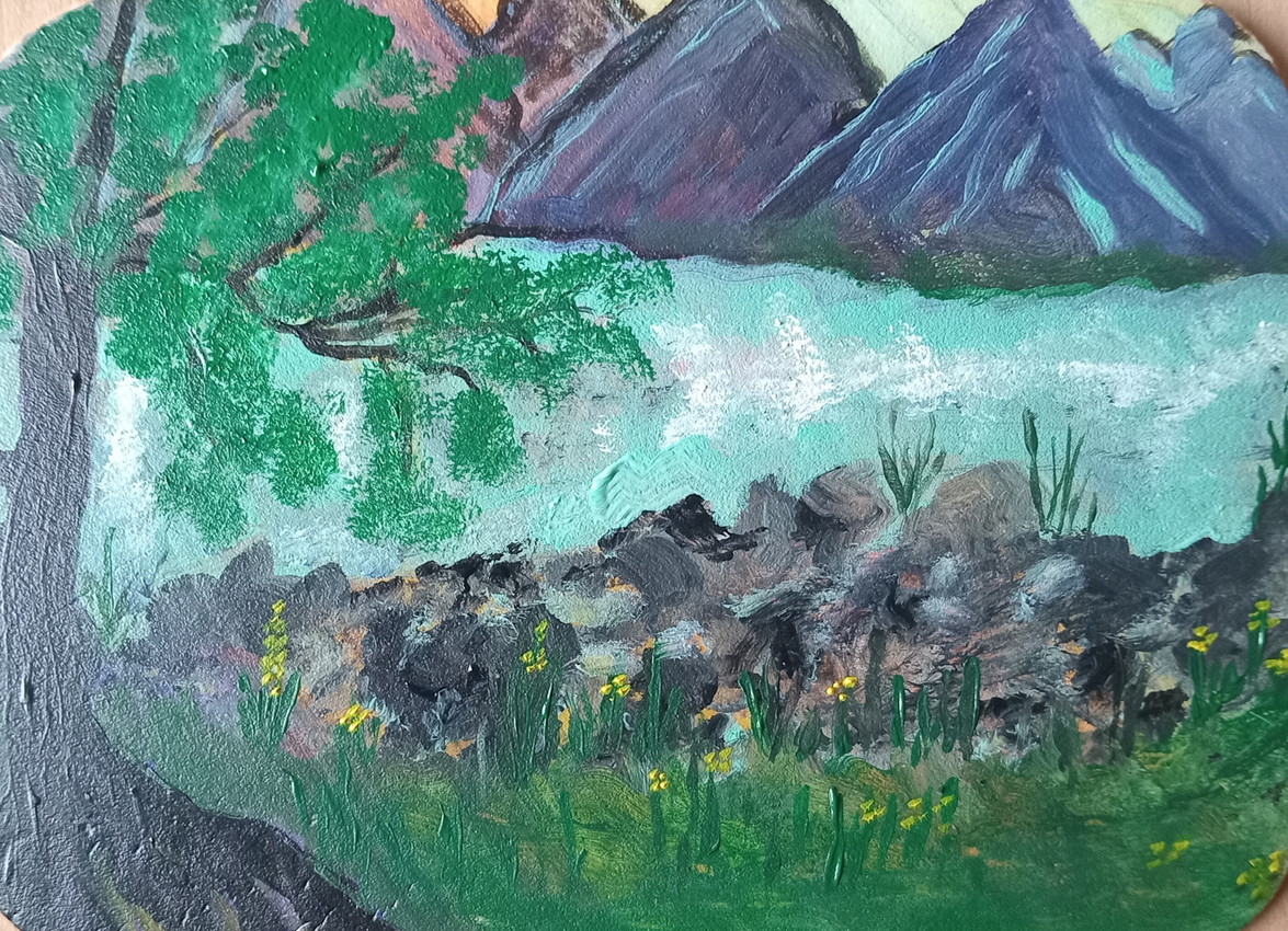 Esta Obra fue inspirada luego de un Viaje que realicé a Bariloche y en el quedé deslumbrada por la majestuosidad y belleza del Paisaje.
