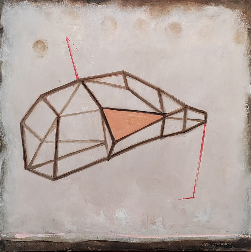 En el interior de esta red, un triángulo de tono vibrante se destaca, atrayendo la mirada y sugiriendo un punto focal o una energía contenida.