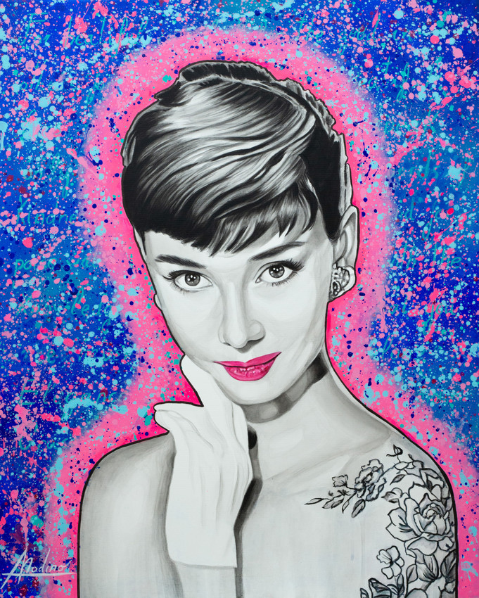 Esta obra forma parte de la colección “Mujeres Icónicas”, una serie dedicada a retratar figuras femeninas que han marcado la historia cultural y se han convertido en símbolos universales de elegancia, carácter y sensibilidad.