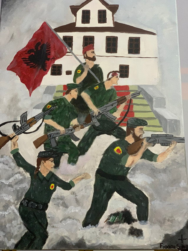 This painting depicts a soldier holding a rifle and the flag, symbolizing bravery, patriotism, and the defense of the homeland. The colors and details reflect his strength and determination to protect values and freedom.”
