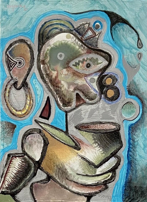 Obra perteneciente a la serie "Autorretratos experimentales". Obra del año 2021. En esta serie el artista utiliza el autorretrato para experimentar con la forma, los materiales y las texturas de la pintura.