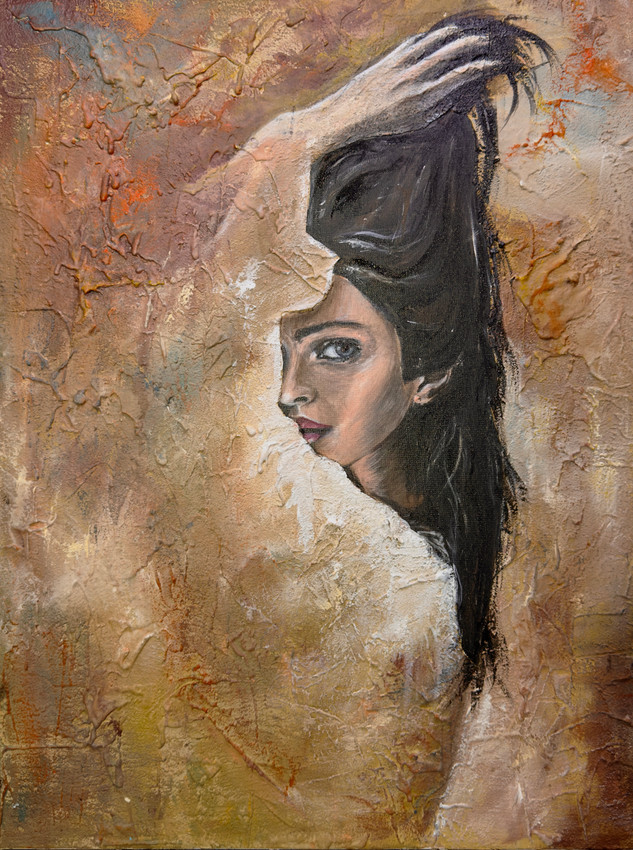 Entre la piel y el silencio. Esta obra en técnica mixta nace del diálogo entre la materia y la emoción. A través de capas de textura, acrílico y veladuras, busco representar ese instante en que la identidad se abre paso desde lo oculto, rasgando la superficie del silencio. La figura femenina emerge entre grietas y tonos terrosos, como si la piel del lienzo se deshiciera para dejar ver lo esencial: una mirada que contiene fuerza, vulnerabilidad y memoria. Es una reflexión sobre lo que callamos, sobre las capas que construimos para protegernos, y sobre la belleza que se revela solo cuando nos atrevemos a desprendernos de ellas.