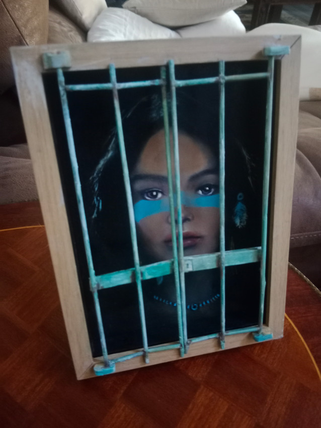 Oleo sobre tabla como marco reproduciendo unas rejas