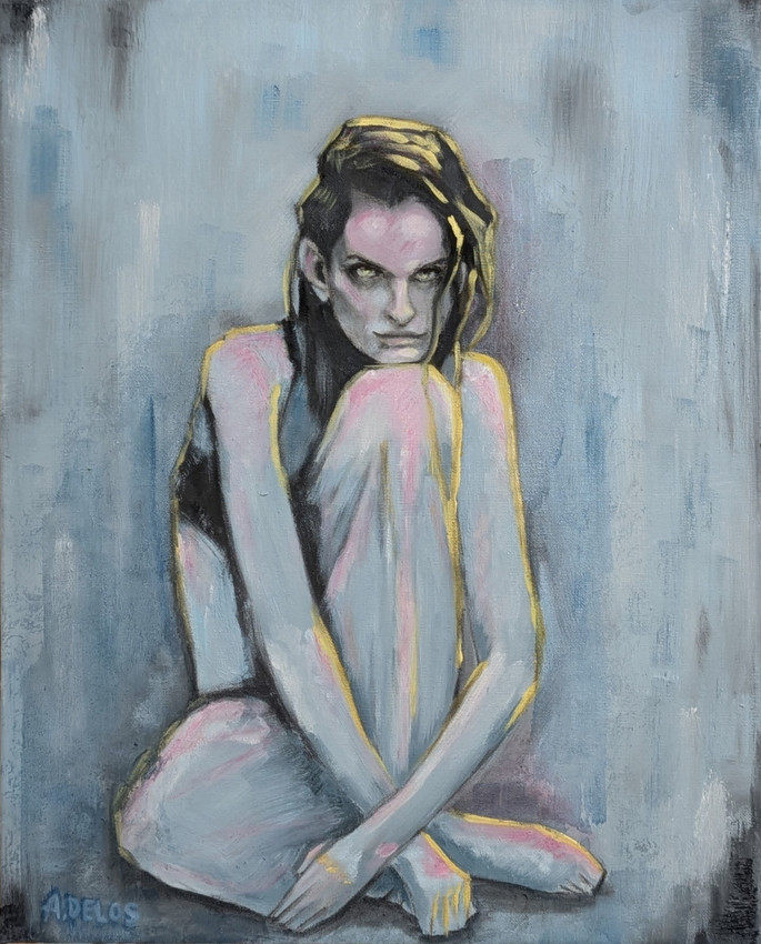 Retrato femenino en técnica mixta de carboncillo y óleo. Frío, oscuridad y soledad se combinan con seguridad, calidez y familiaridad. Una mezcla de sentimientos contrarios perfectamente emparejados en esta obra para provocarnos este atrevido contraste.