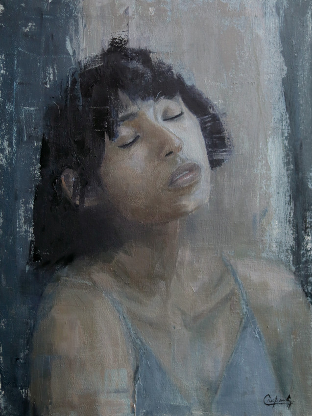 Esta obra cautiva al espectador con una fascinante mezcla de realismo contemporáneo y sutil expresionismo, hábilmente elaborada en óleo sobre lienzo. El artista navega con destreza entre el color y la emoción, presentando un retrato femenino bañado en tonos verdes tenues pero ricos. Aunque la paleta no es muy brillante, emana un aire de misterio y sofisticación. Los rasgos de la figura están meticulosamente representados con realismo, capturando las sutilezas de su expresión y personalidad. Sin embargo, al observar con detenimiento, se percibe un juego emocional sutil que sugiere corrientes internas en el mundo interior del sujeto. Los tonos verdes, reminiscentes del brillo de las esmeraldas, evocan una sensación de tranquilidad y armonía.