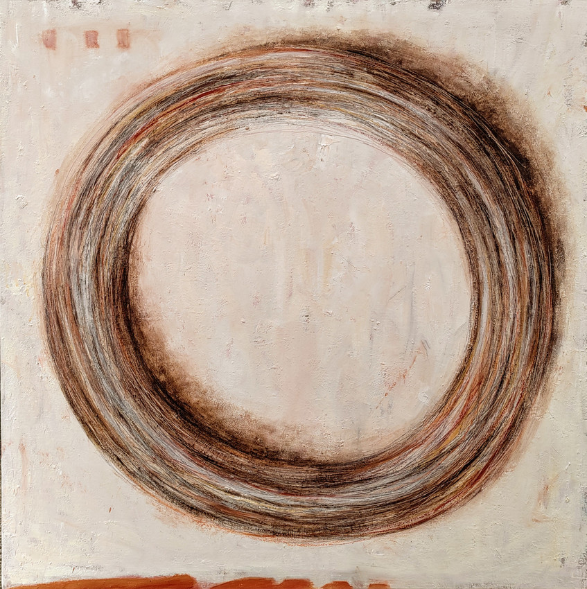 Esta obra nos remite a la rueda del Samsara, el ciclo de nacimiento, vida, muerte y renacimiento. A través de su composición evoca el proceso cíclico y continuo de la existencia. La pintura sugiere la inevitable repetición de estos estados hasta que se alcanza la iluminación, momento en el cual el ciclo se rompe y se logra la liberación espiritual. La elección de óleo sobre tela aporta una textura y profundidad que enriquecen la representación de este ciclo vital, invitando al espectador a reflexionar sobre la naturaleza cíclica de la vida y la búsqueda de la trascendencia.